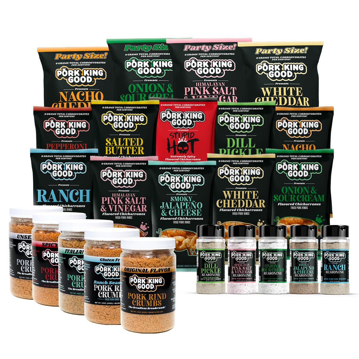 You're obsessed, and we can 100% relate. Stock up on THE MOTHERLOAD of pork with our biggest and best variety pack option that includes every Pork King Good product in existence!